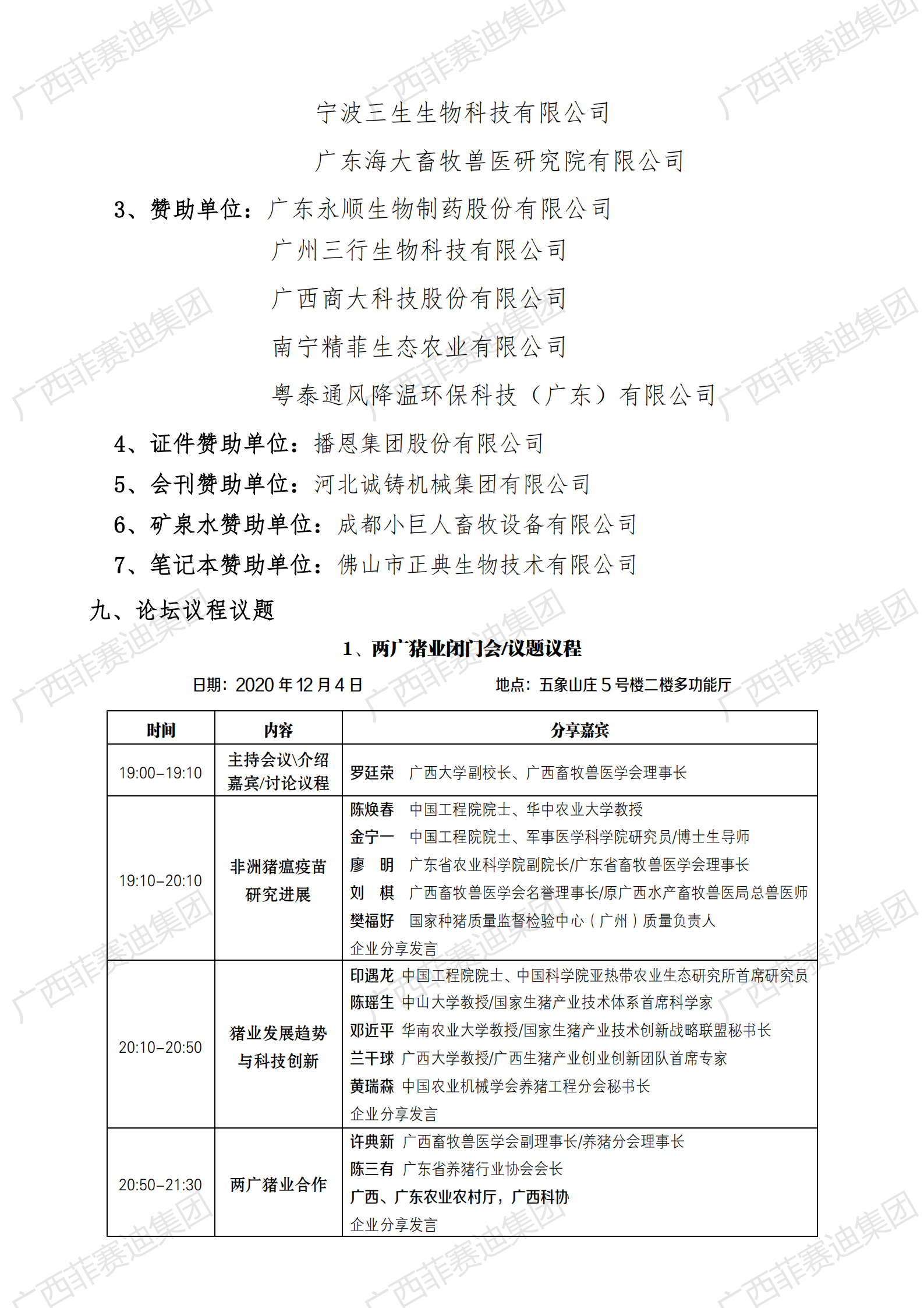 2020年“两广畜牧兽医岑岭论坛”于2020年12月4日-6日在南宁市五象山庄举行,,,,,,,广西playace登陆界面集团组团加入。。。。。通过参会与业界大咖交流,,,,,,,学习养殖新手艺,,,,,,,掌握非瘟防控新步伐,,,,,,,共建猪业相助新生长。。。。。
